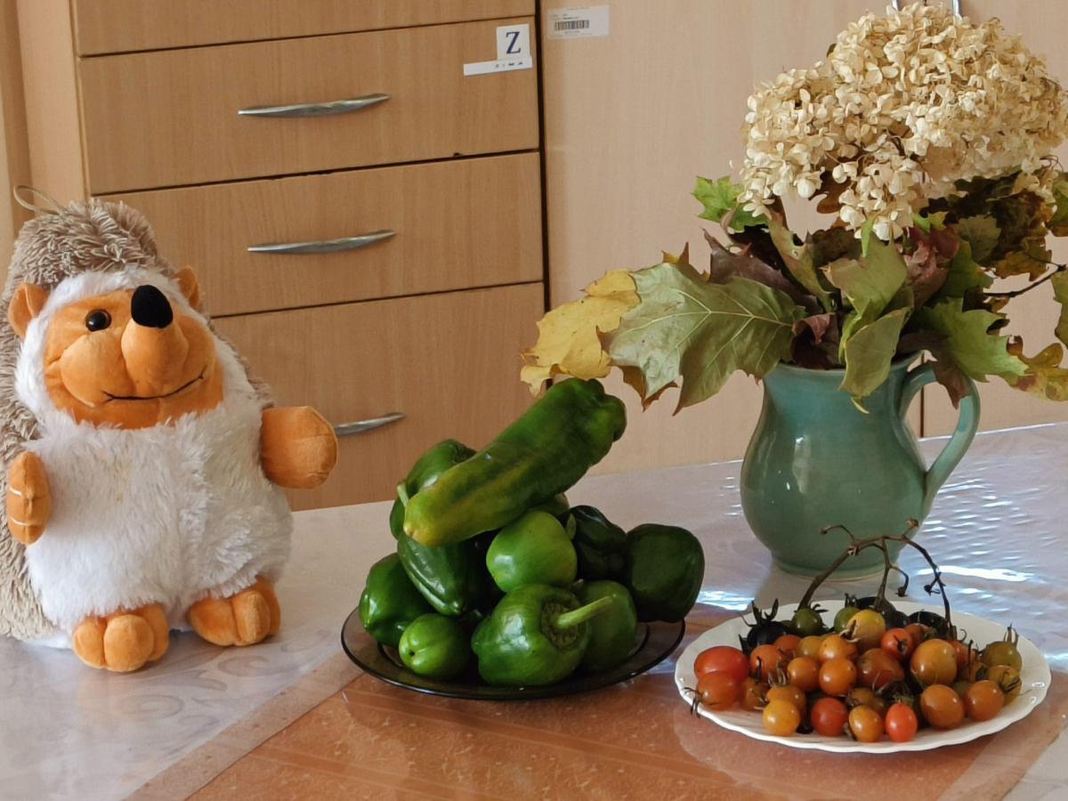 Uprzątnięto pozostałości po sezonowych warzywach i roślinach uprawianych przez mieszkańców w ogrodzie oraz zabezpieczono rośliny ozdobne przed nadchodzącą zimą.